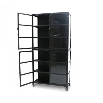 Black Iron Glass Cabinet at Chambers Design. A tall 2-piece industrial style display cabinet with...