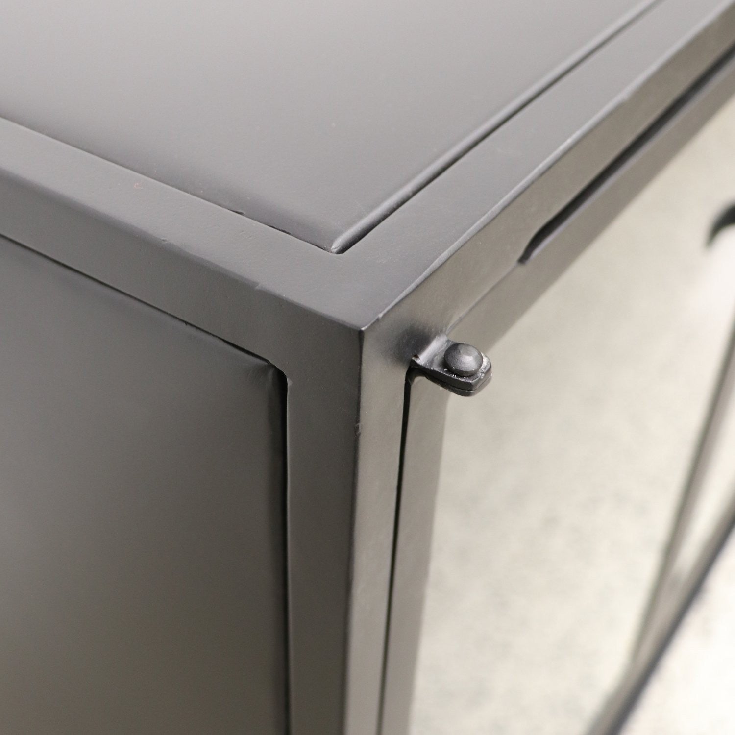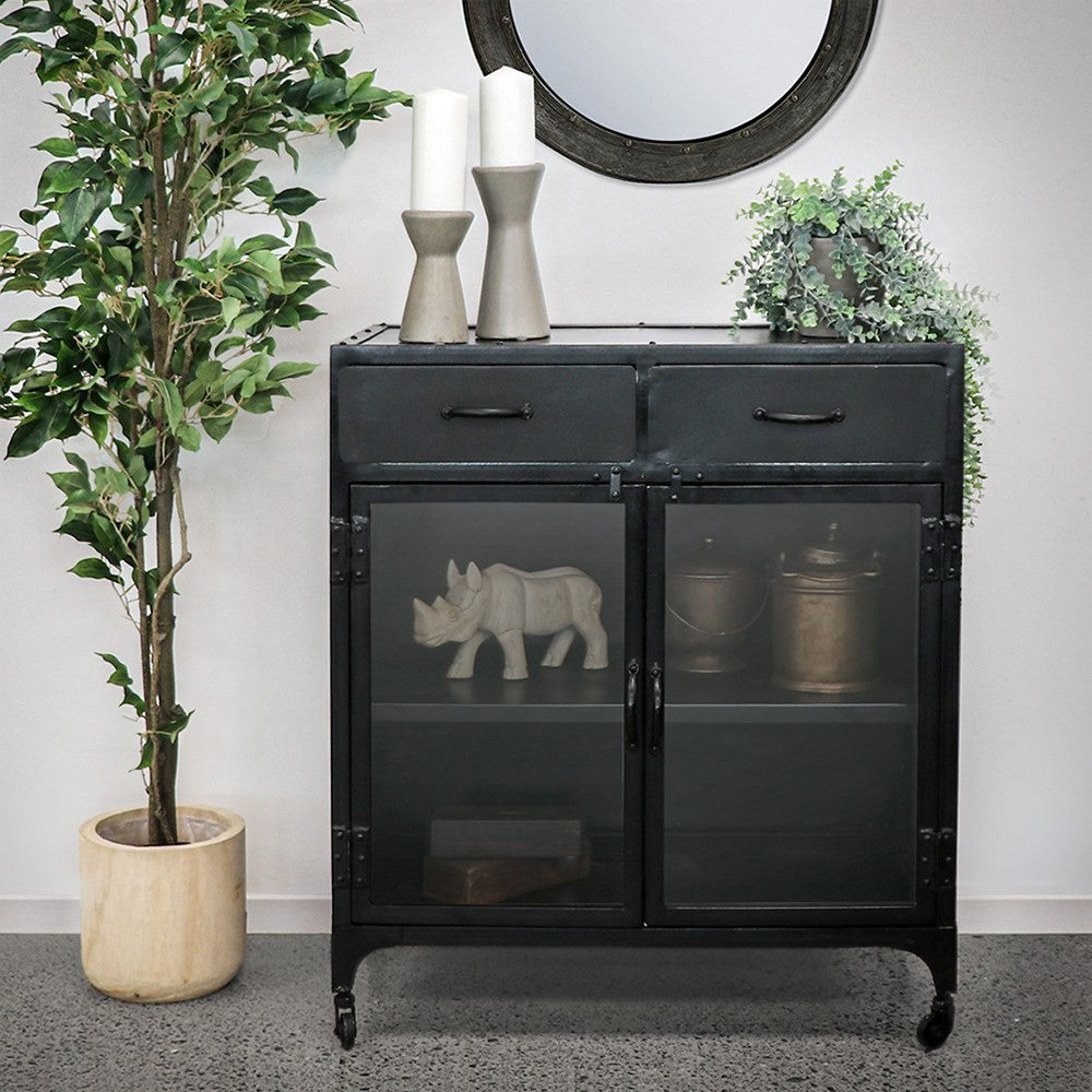 Artisans construct the Bank Two Drawer Display Cabinet through a process of bending, welding and riveting, making it the perfect example of rustic industrial furniture.