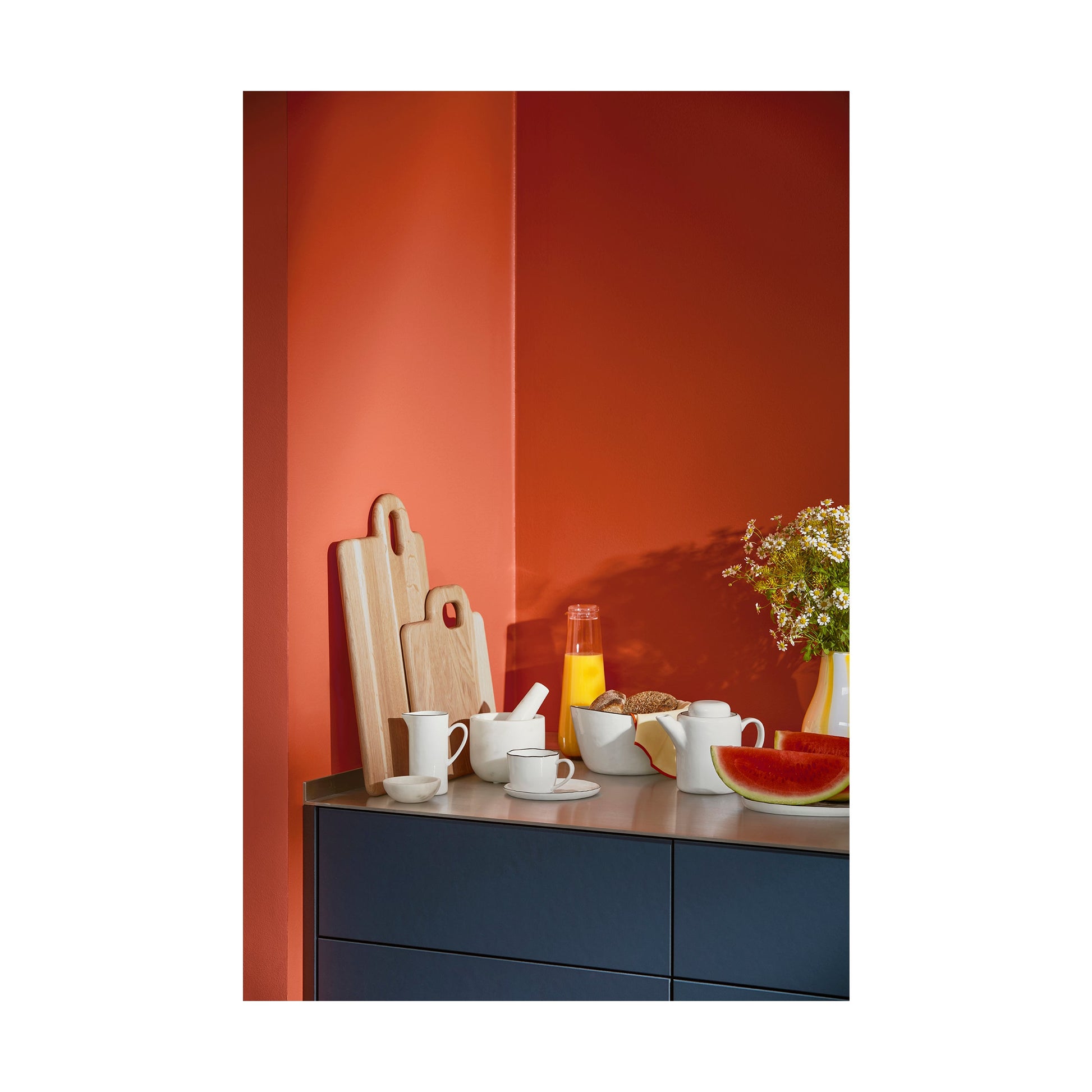 Because of its contrasting coloured bottom, this mouth-blown glass carafe will add a warm and colourful touch to your table settings. Pair with the glasses from the same collection, which are also available on our website.