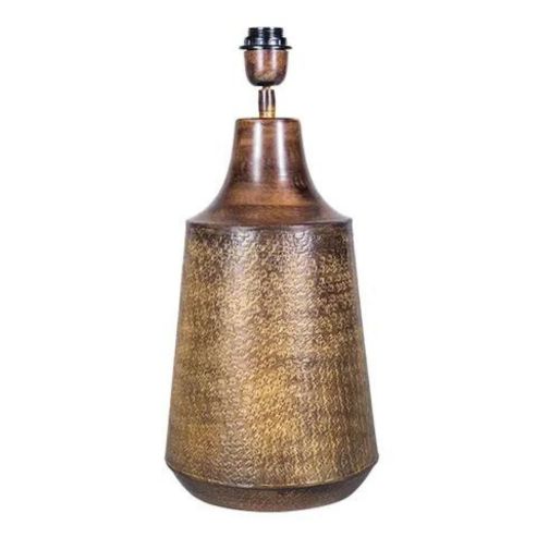 A wide based lamp base in rich chocolate colour with hammered detailing