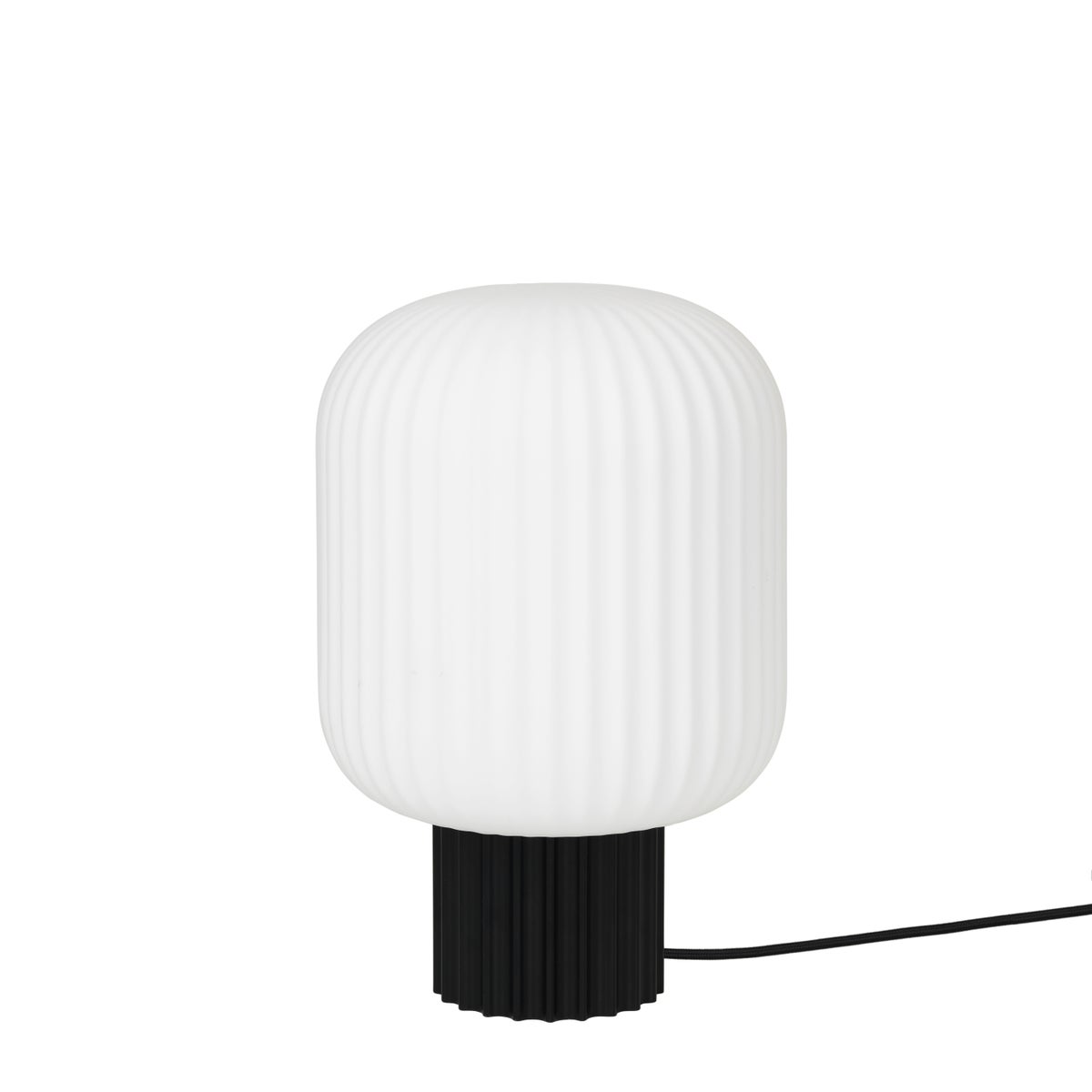Inspired by the streamline art deco period between functionalism and modernism, Lolly by Broste Copenhagen is a lamp collection with an elegant and delicate silhouette. The collection consists of pendants and table lamps with a beautiful, ribbed surface following the metal base to the opal glass shade, which illuminates the room with a soft and warm light. White Opal glass with black metal fitting. Recommended E14 4 watt LED bulb.