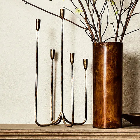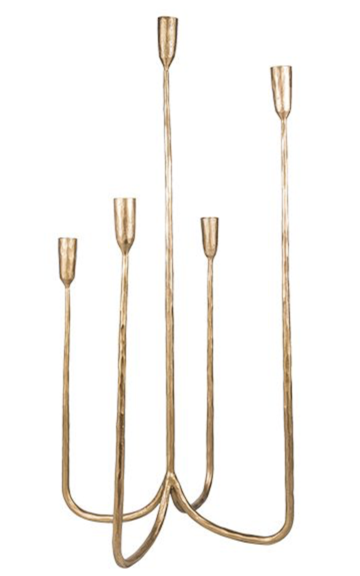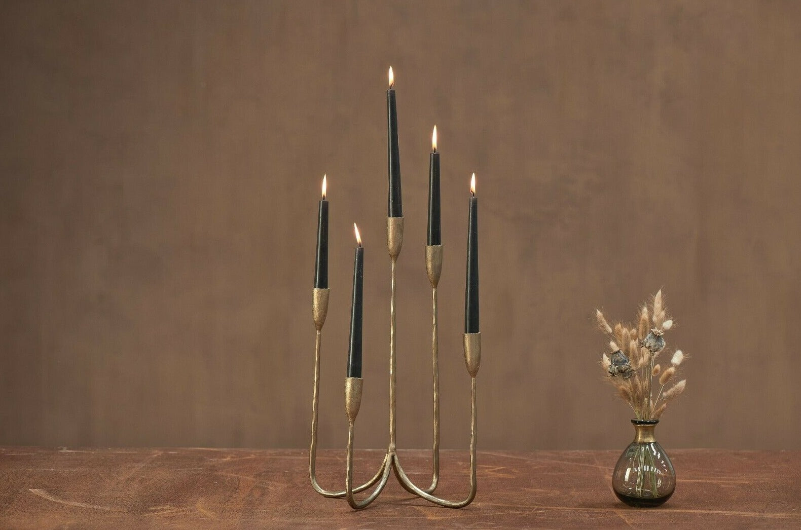 A beautifully constructed modern, elegant cluster candelabra hand-forged from iron in gold from Chambers Design Timaru.