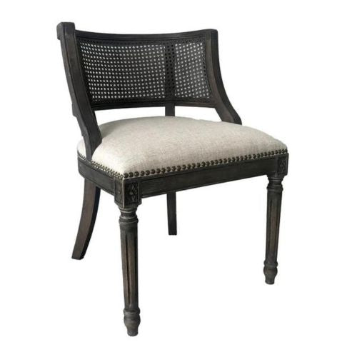 A unique take on a classic design, Chmabers design love this colonial rattan dining chair is made with a sturdy, solid rubberwood frame w/ a rattan back panel, and upholstered in linen fabric with brass stud detailing, and a comfortable foam fill. This dining chair will look fantastic in any dining room and compliment a wide variety of home décor and furniture.