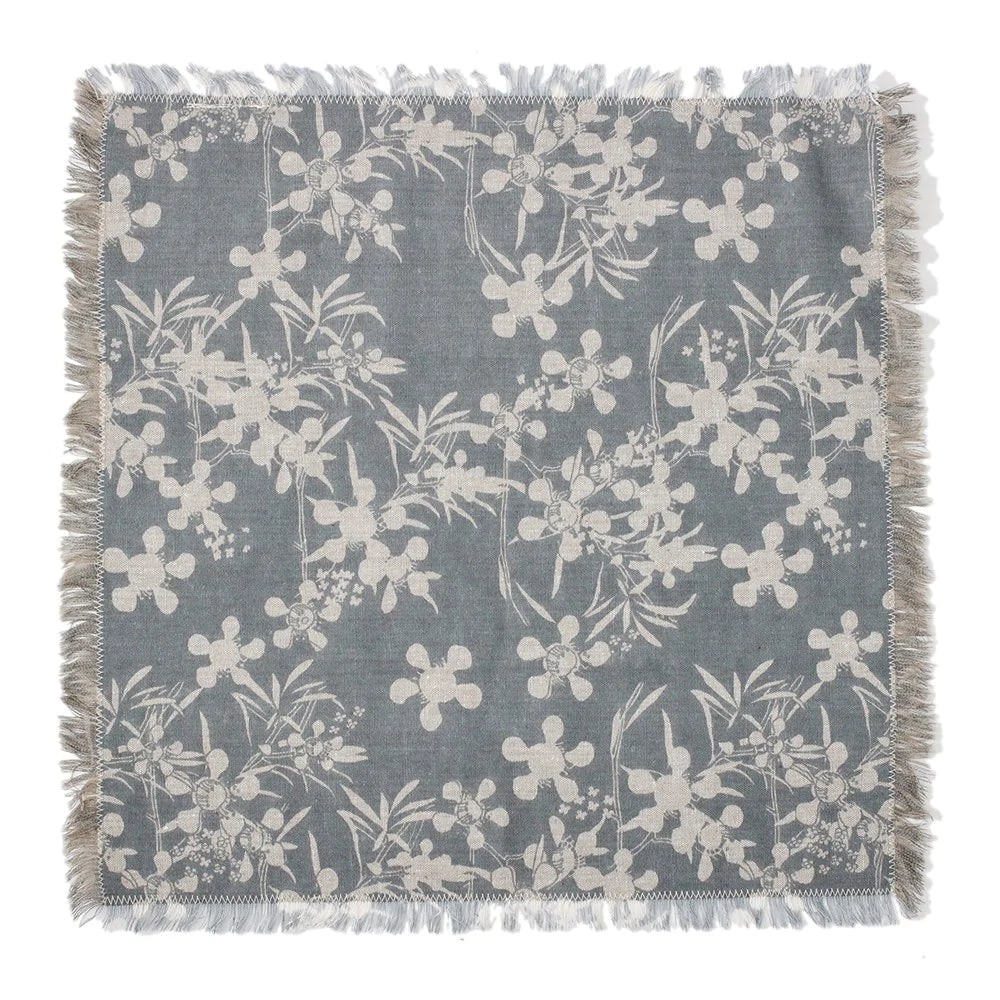 Set of 2 recycled cotton tea towels each measuring 50x70cm. One is screen printed with a hand drawn myrtle flower design, the other has woven sage green and natural cream stripe.
