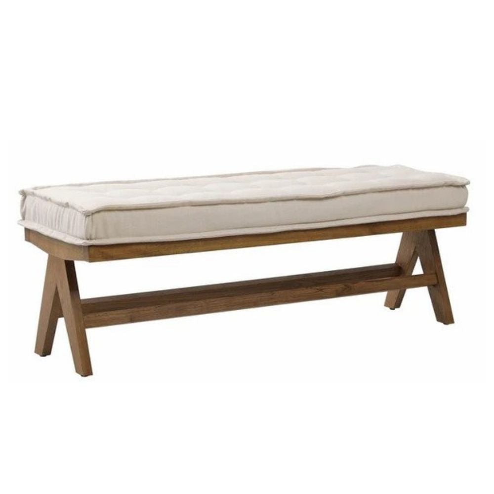 The Peddlers Bench Features A Classic Tried And True Design With A Solid Oak And Rattan Frame With A Comfortable Linen And Foam Cushion. Its Muted Tones Looks Fantastic With Any Home Decor.