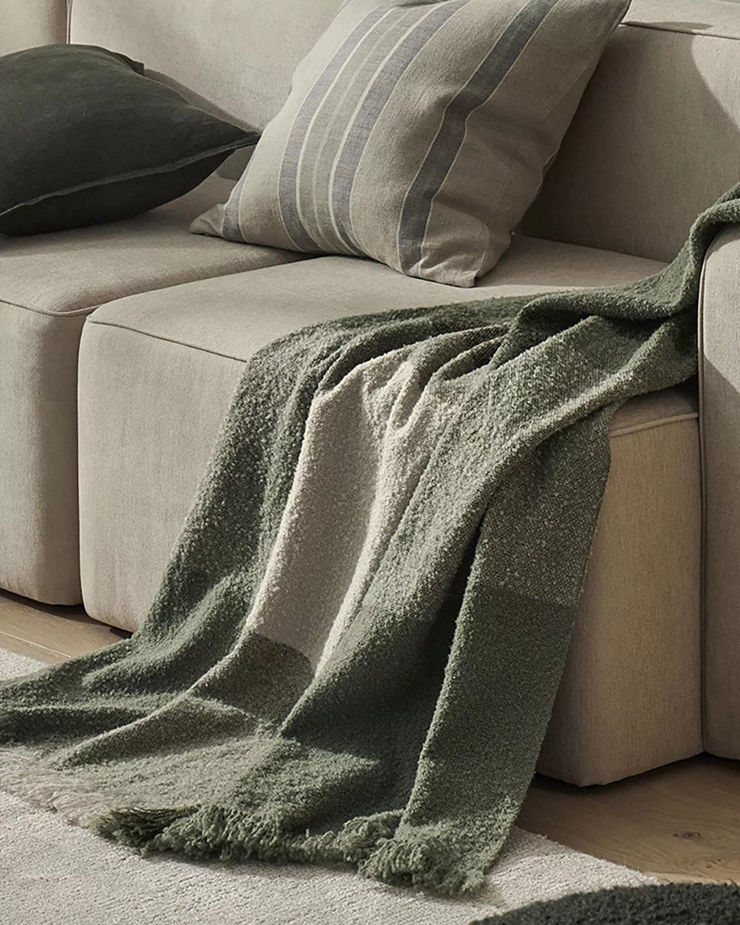 The Grange Spruce throw come in 5 colourways - Spruce, Honey, Midnight, Ochre and Onyx.